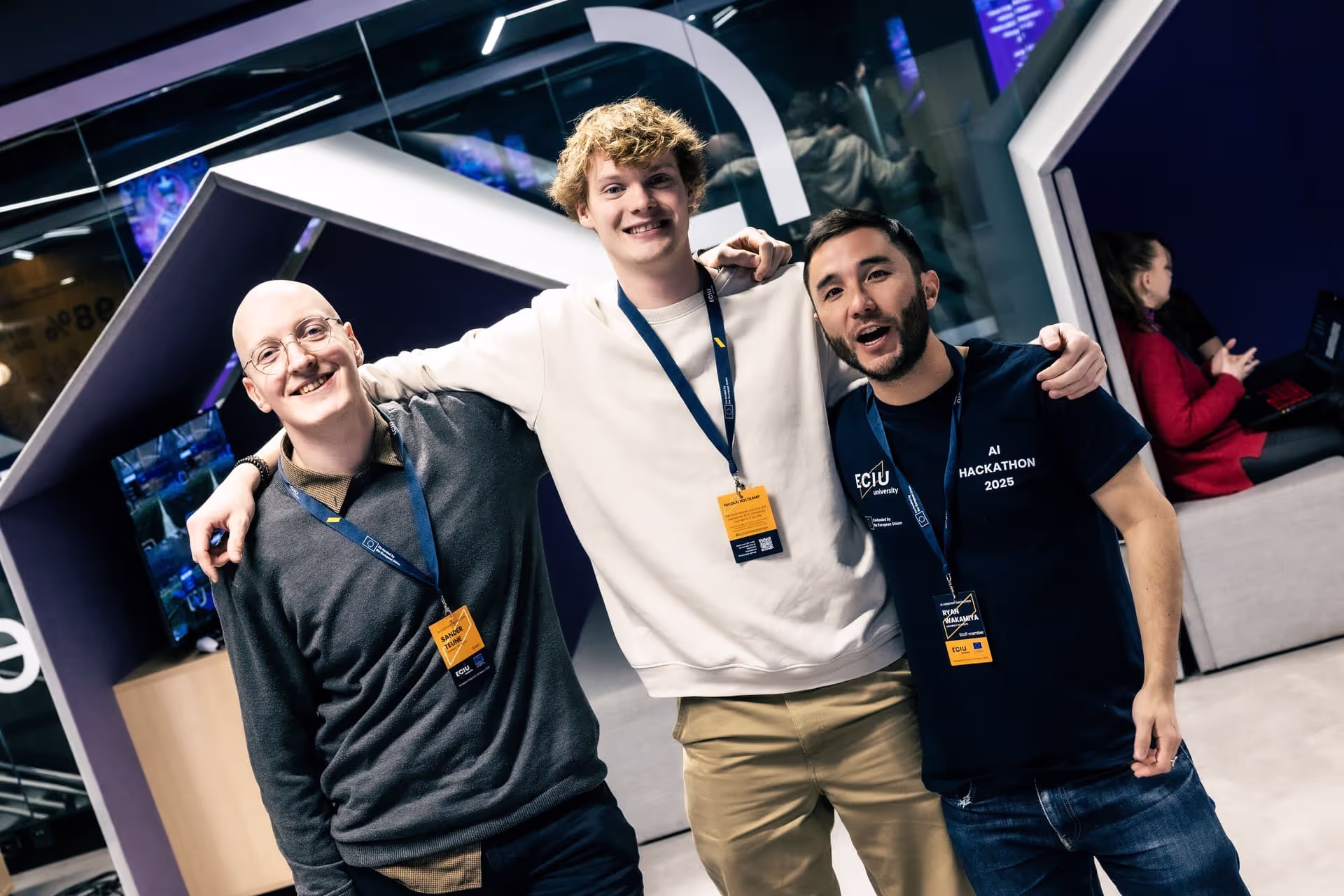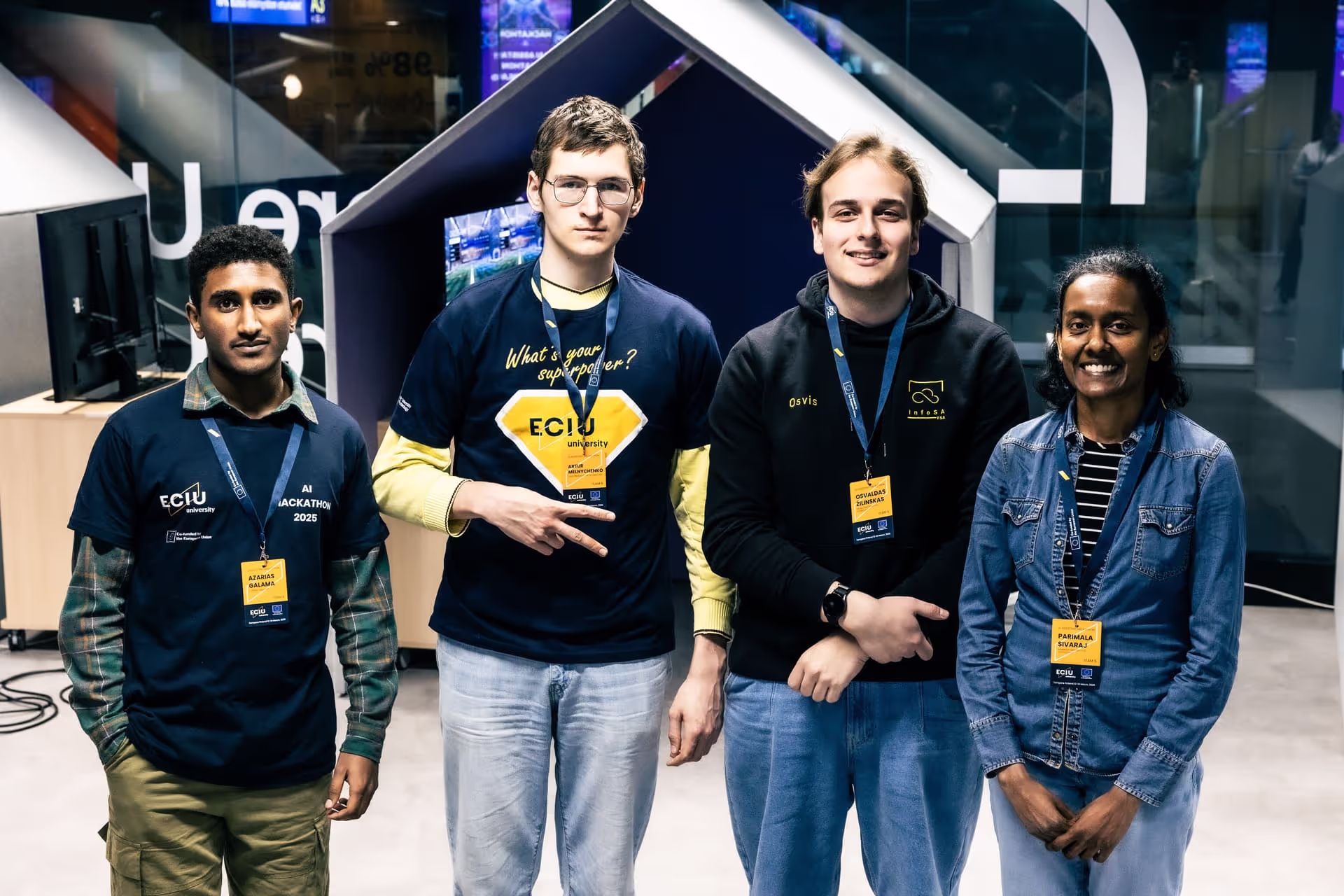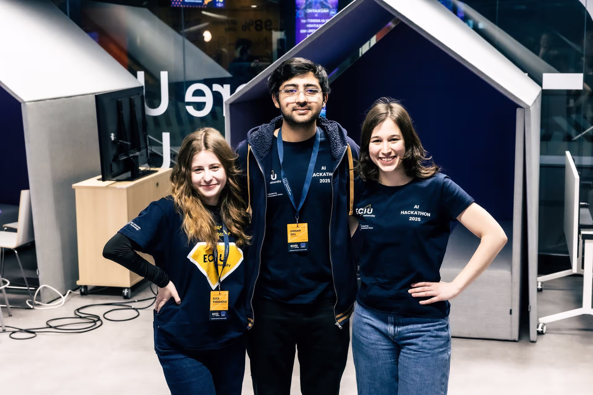 ‘During the Hackathon, the atmosphere was electric — teams from different countries all tackling AI challenges in their own unique ways,’ says Daniyar Zhumatayev from Lodz University of Technology (TUL). His team developed an AI assistant that helps students find personalized learning opportunities across the ECIU University network.