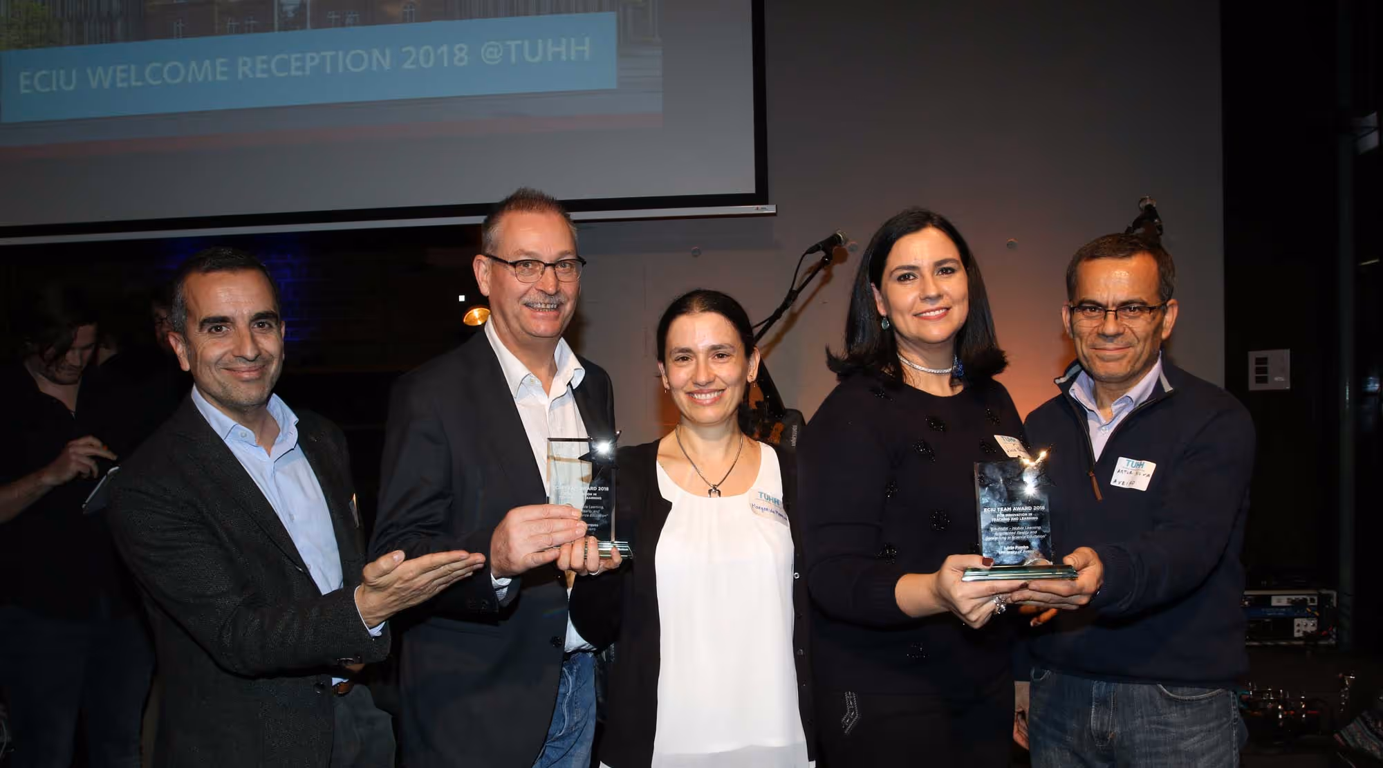 The EduPARK project has won the prestigious European Consortium of Innovative Universities (ECIU) Award for Innovation in Teaching and Learning. Lúcia Pombo, the EduPARK coordinator, and Margarida M. Marques, a research fellow working on the project, both from the CIDTFF Research Centre for Didactics and Technology in Teacher Education, received the prize at a special ceremony held at Hamburg University of Technology on the occasion of the ECIU Board Meeting.